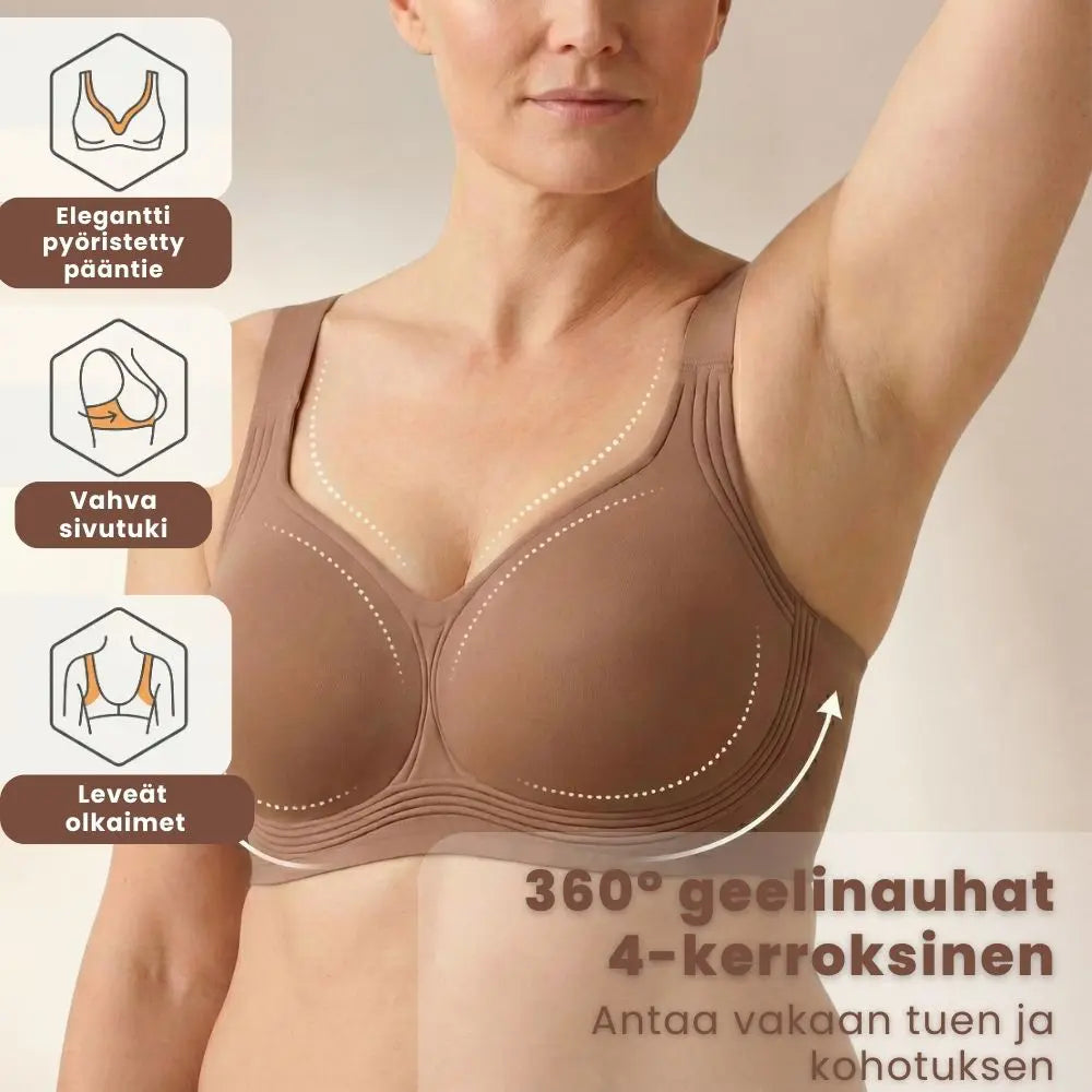 Ainutlaatuisen geelitukirakenteen ansiosta rintaliivit mukautuvat täydellisesti vartaloon ja tarjoavat vakaan tuen sekä muotoilevan istuvuuden ilman puristusta.